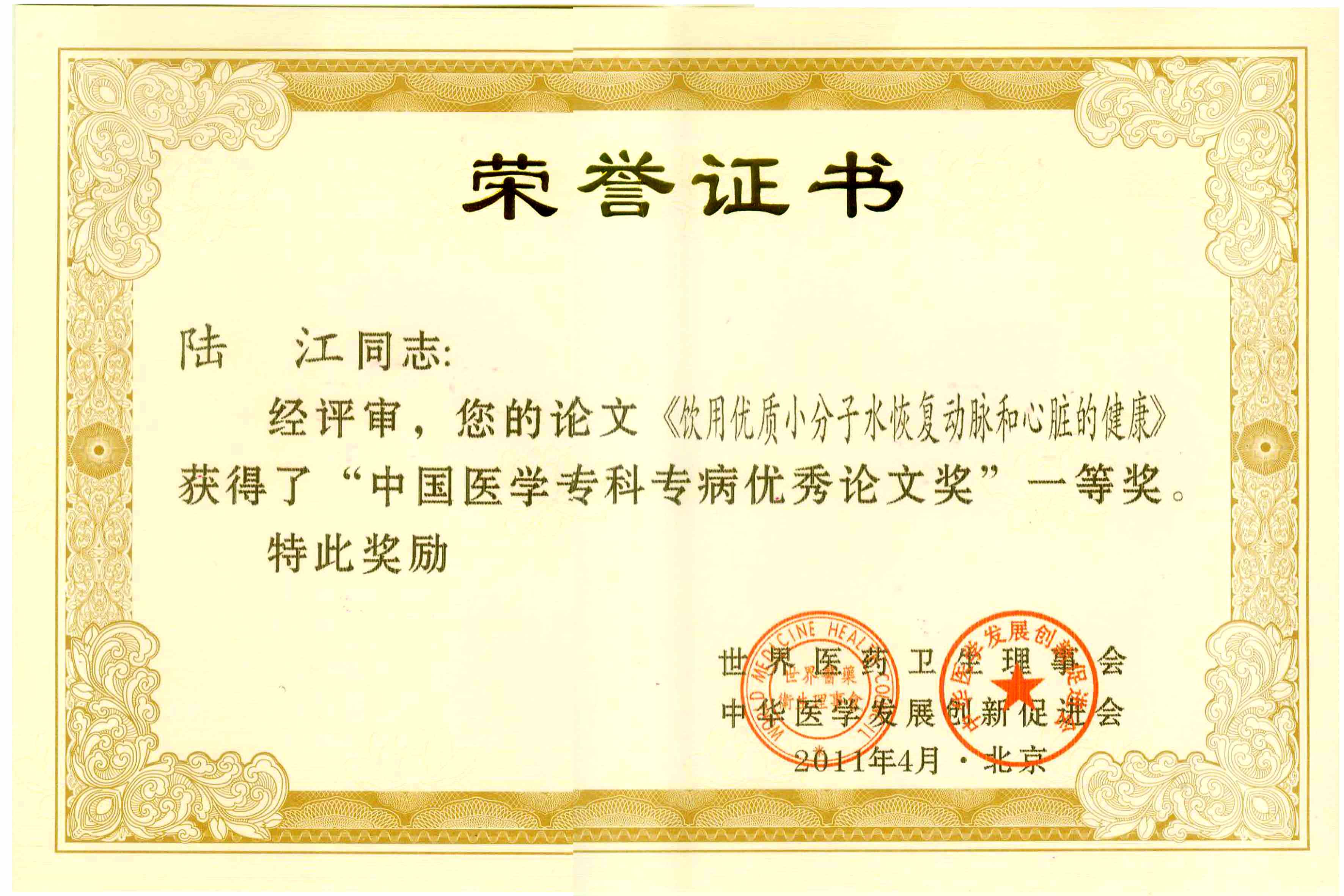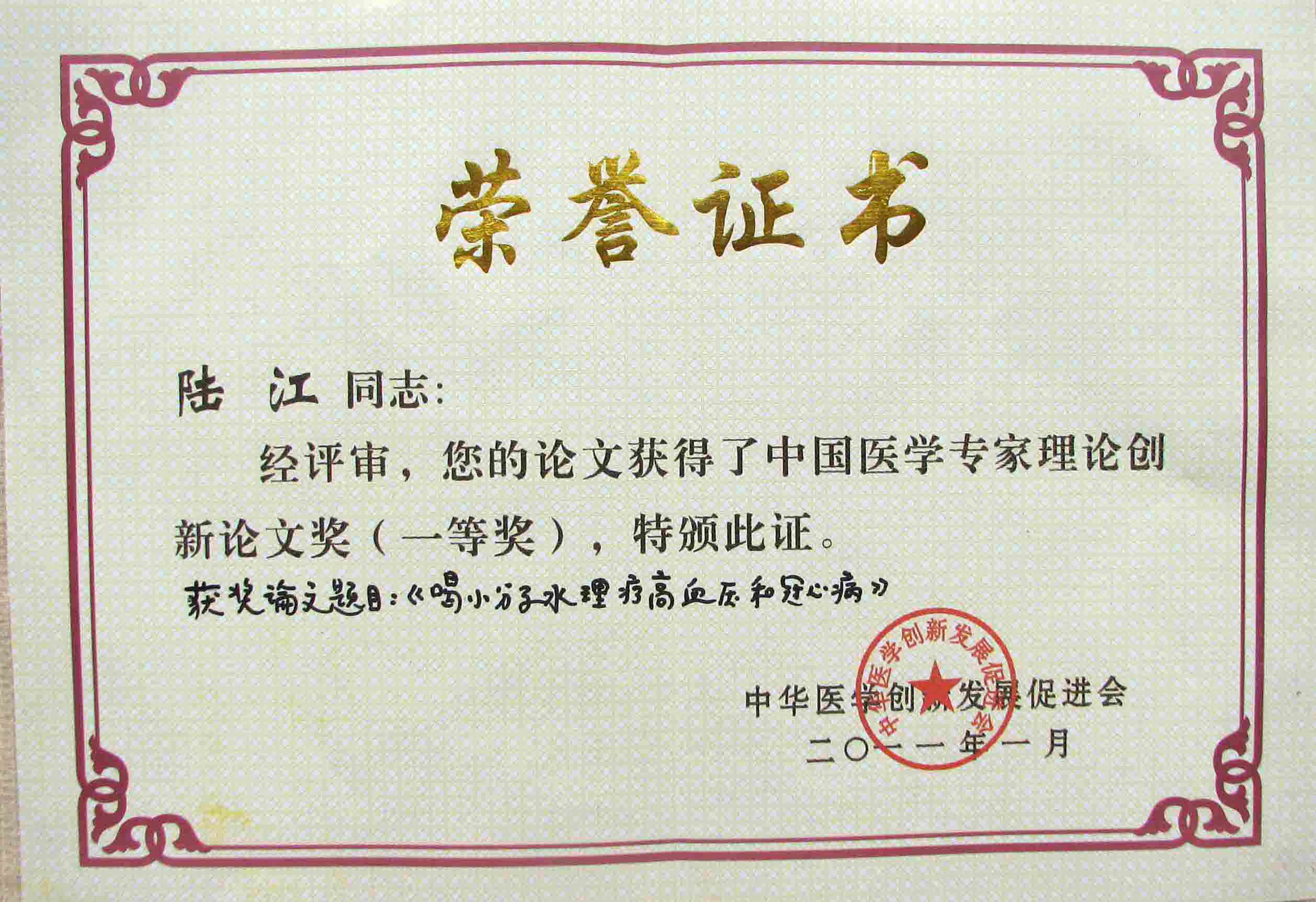 人類幾千年來(lái)患以上病癥需終生服藥,幾十年也不能治愈。可是我國(guó)南寧的高級(jí)工程師陸 江,于1990年想根治高血壓,研究發(fā)明了離子水瓶,處理出微小分子團(tuán)水供飲用,經(jīng)過(guò)醫(yī)院臨床試用和專家鑒定,1999年獲中國(guó)發(fā)明專利權(quán),產(chǎn)品于2000年投放市場(chǎng)后一直跟蹤調(diào)查,據(jù)全國(guó)各地用戶反饋:祛除了高低血壓、糖尿病和冠心病,并使前列腺增生、咽喉炎、鼻竇炎、慢性氣管炎、支氣管炎、矽肺病、哮喘、慢性胃炎、腸炎、慢性膽囊炎、慢性腎炎、腎衰、膀胱炎、便秘、痔瘡、風(fēng)濕性關(guān)節(jié)炎和濕疹皮炎及中風(fēng)后遺癥等病癥不藥而愈。為什么喝微小水能治20多種病?陸 江從1991年德國(guó)科學(xué)家發(fā)現(xiàn)細(xì)胞膜水通道僅為2納米獲得啟發(fā),認(rèn)為多種器官患病是因細(xì)胞脫水,不能正常代謝和分裂增殖,才使器官細(xì)胞減少致衰弱萎縮而形成細(xì)胞缺水性病癥。22年來(lái)的實(shí)踐有力地支持了“細(xì)胞脫水致病”這一重要論點(diǎn),表明喝微小水可滿足細(xì)胞的生理需求,補(bǔ)水就能祛病,是生命科學(xué)新亮點(diǎn)。