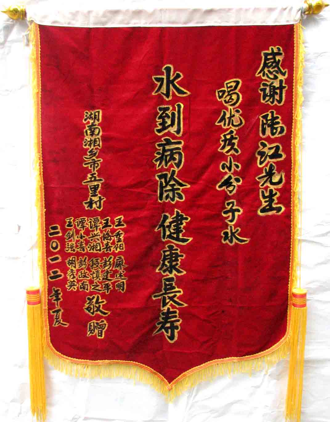 新疆63歲的賀兆生飲用一年,冠心病未愈,他用電話介紹是食堂管理員,問(wèn)他食量多少?說(shuō)吃七八分飽,睡前還吃兩袋牛奶,陸 江說(shuō)我在論文和書中多次批判“吃七八分飽”,關(guān)照患者務(wù)必用“己饑方食”控制主食肉食量,要他把牛奶改在早中餐吃,減少主食肉食量,建議不吃晩餐,晚上只吃一個(gè)蘋果,再經(jīng)幾個(gè)月補(bǔ)水節(jié)食,治愈了21年的冠心病和肥胖、失眠等病,信中由衷地感激陸 江為再生父母。[13]因?yàn)獒t(yī)生從未過(guò)問(wèn)他的膳食習(xí)慣,只管開處方藥或手術(shù),父母也不會(huì)叫他不吃晩飯。